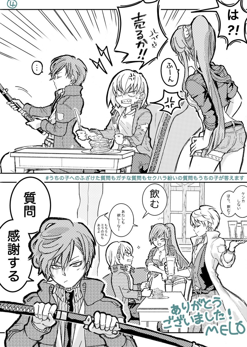 # うちの子へのふざけた質問もガチな質問もセクハラ紛いの質問もうちの子が答えます 大変大変遅くなってしまいましたが、描かせていただきました! めちゃくちゃ遅くなってしまい、すみません😖💦 4人の年齢についてです😊 質問くださり、どうもありがとうございました!💓✨ #MELOの創作_質問箱