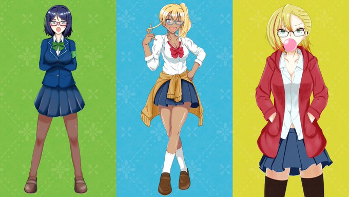11 13 #メガジョ そいえば自分で描いた娘達の紹介をしてなかった! 左から風紀委員の海風紀香ちゃん オタクに優しいギャルの御影優香ちゃん しっかり系不良の国木田真澄ちゃんと 3キャラクター イラストで参加させていただきました! 21/06/27 21:23