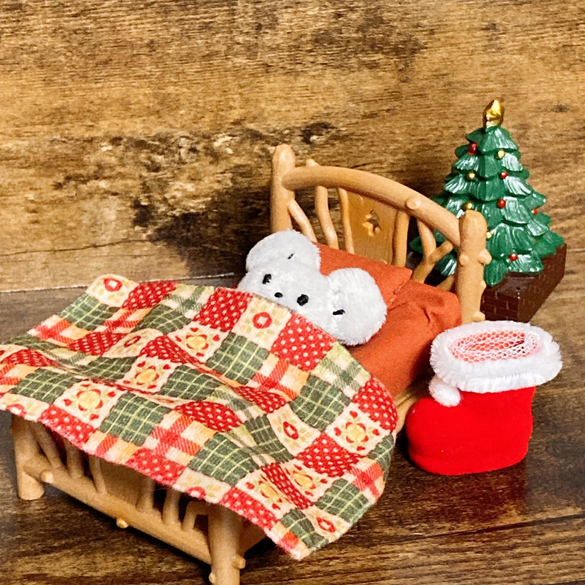 イッカネズミのお子さんぬいぐるみを作りました🐭 5cmも無いいのちです クリスマスが待ちきれないようですね