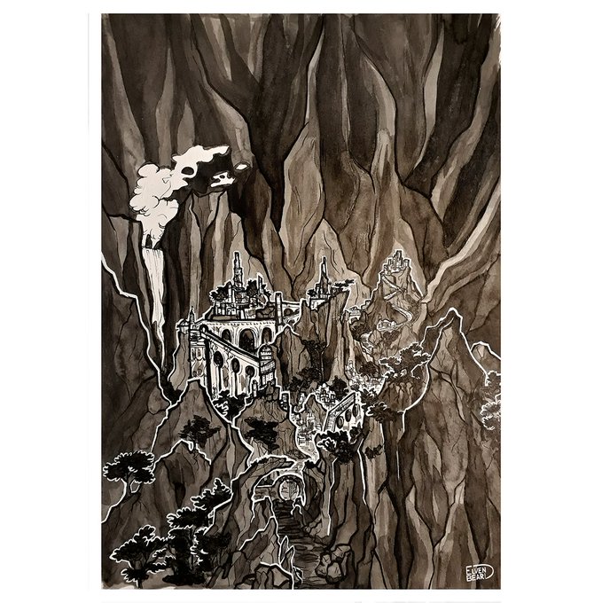 #inktober2019 day 15: #legend No other Ivendarean city is as legendary as Canwyl. The cradle of the nation is the oldest city, unique in its architecture dominated by glass and metal. Surrounded by ice and snow for most of the year it is heated by subterranean hot springs.