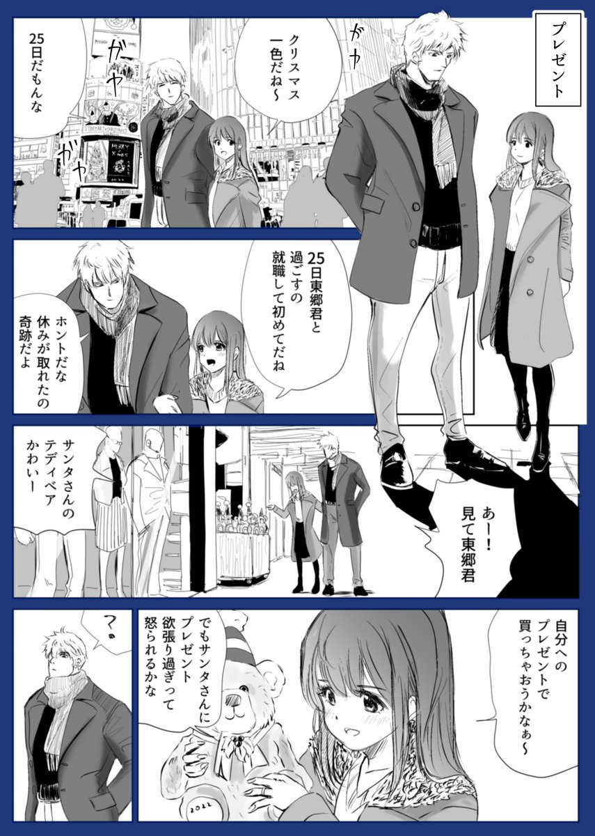 8 35 久々にこち北キャラの漫画描いた。 東郷君と遥ちゃんが幸せだった頃のクリスマス。 #一日一絵 #イラスト好きと繋がりたい #漫画の読めるハッシュタグ 22/12/11 23:24