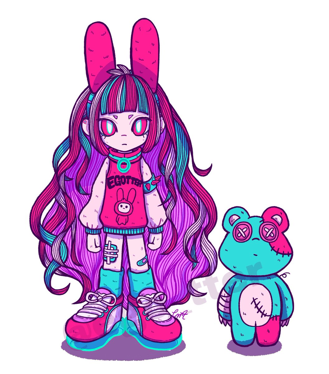 えごったー(@ego_tter )のアイコンを描かせて頂きました🐰🐻 「気になるし知りたいけど、知ってしまうと傷付くこともある」そんなえごったーのトゲトゲしさと可愛いマスコットキャラを擬人化させちゃいました💜 #えごうさ