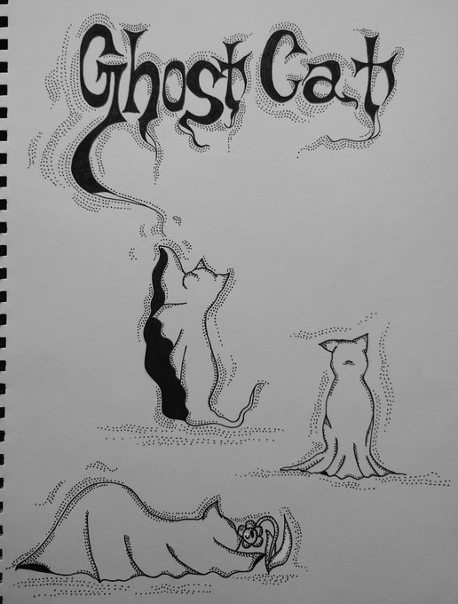 ねこのおばけ ghostCat アナログお絵かき 犬といえば猫でしょうと言う単純な理由😂猫っぽいかなあ? #イラスト #Illust #ペン画