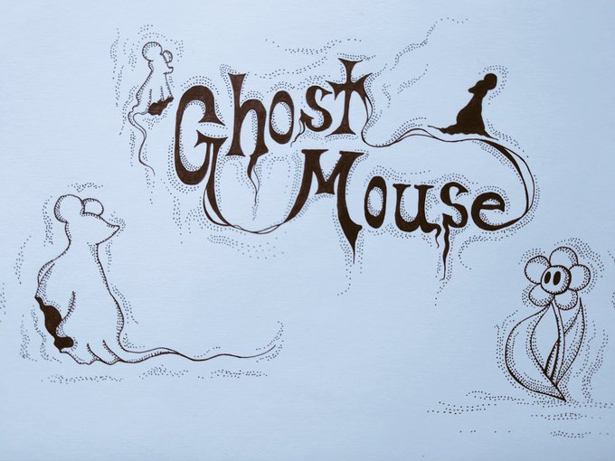 おばけのねずみ ghostmouse アナログペン画でお絵かき ねずみさんのラジオ聴きながら🐭 銀河鉄道の夜の朗読がとても素敵で右上に黒シルエットのねずみを書き足したー☺ #イラスト #Illust #ペン画 #お絵かき
