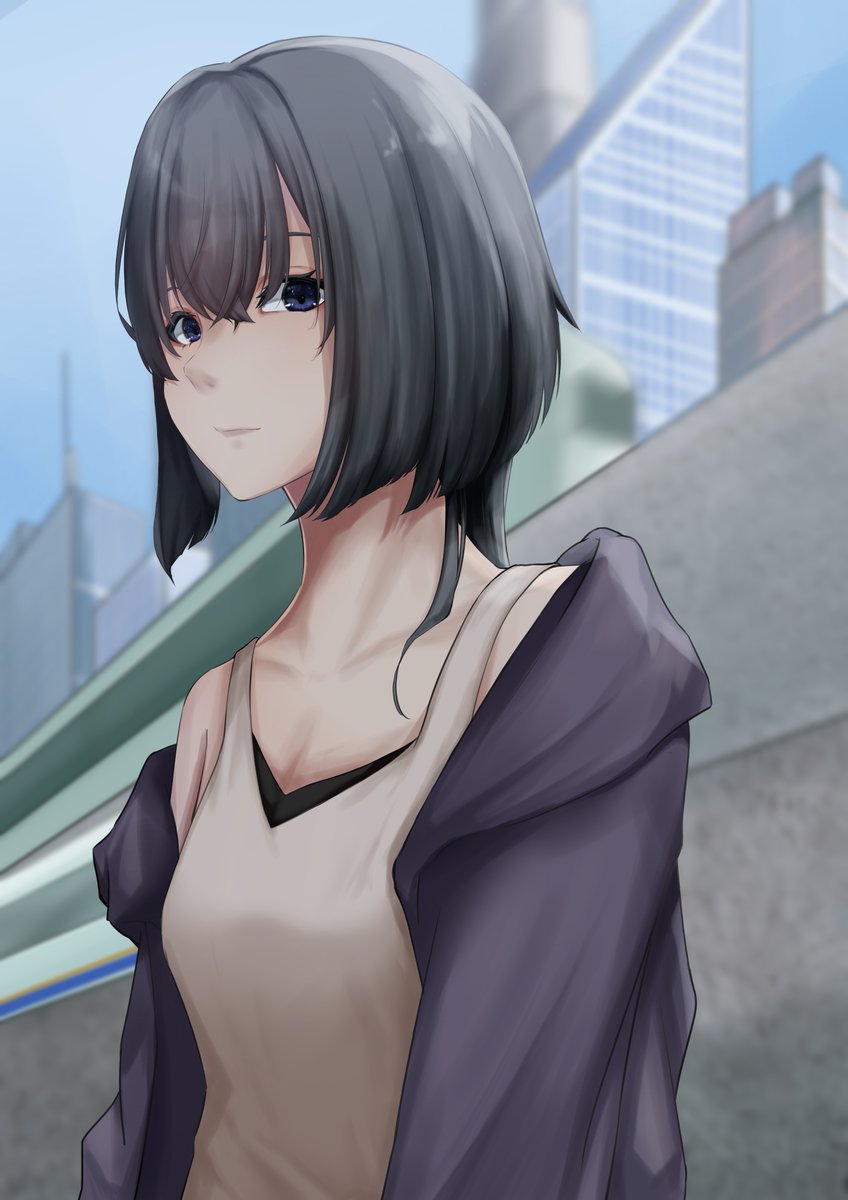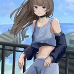 #イラスト #illustration #絵描きさんと繋がりたい #絵師さんと繋がりたい 海沿いの街にいる女の子