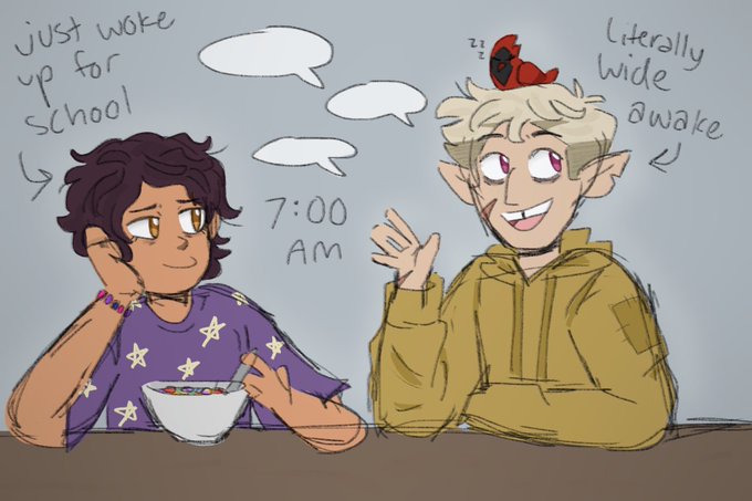 silly headcanon that hunter still has the habit of waking up early and would entertain luz as she got ready for school #theowlhouse #tohfanart