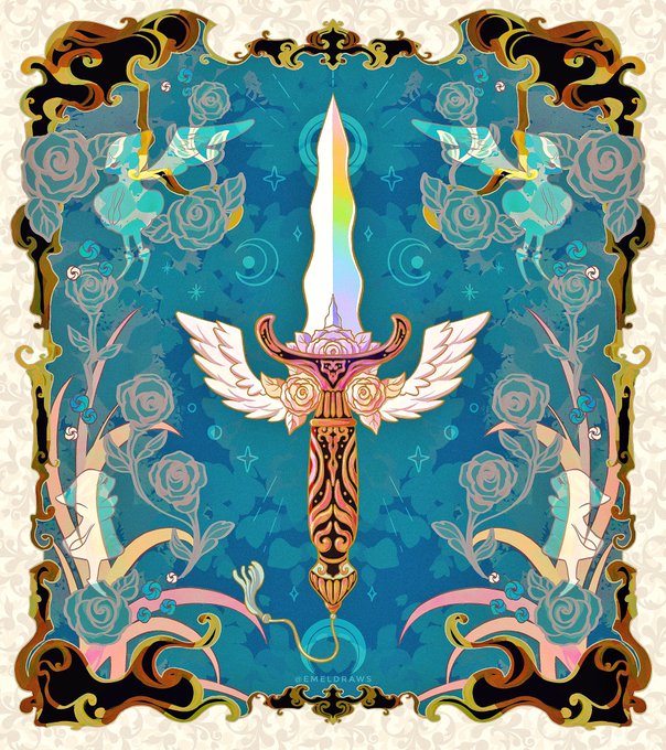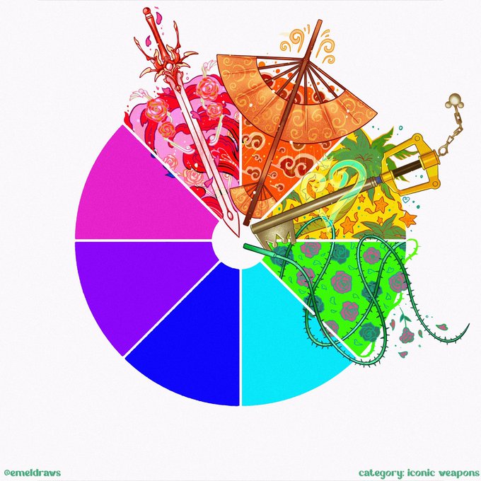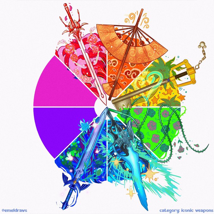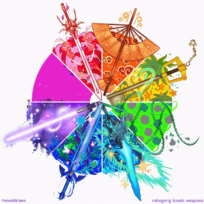 I grew up on Final Fantasy so I chose Squall’s Lion Heart gunblade for cyan. We all know what’s for blue, right? 🗡️ twitter.com/emeldraws/stat…