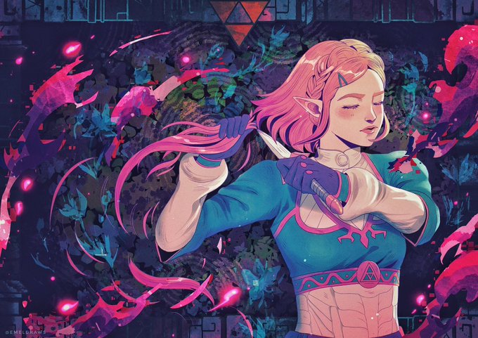 The one and only Master Sword for blue. What weapon comes to mind for purple? twitter.com/emeldraws/stat…