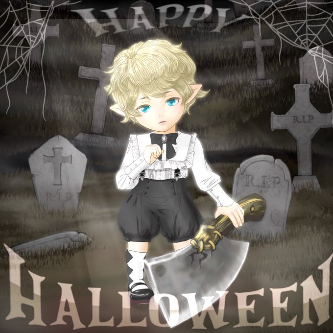 滑り込みハッピーハロウィン🎃 本当はもっとあれやこれや際どいのを描きたかったのですが、脳内だけで終わるかも… Twitterの流れも時の流れも私には早すぎて、色々追いつけねぇです (はじめたばかりなのにギブアップ宣言) #キャラストファンアート