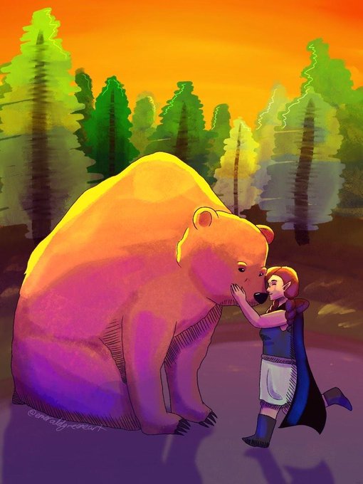 During my spring break I've actually been able to make art, so here's something I made. It's my D&D character Gladys hooping a grizzly bear, because she has no self preservation instincts (as a druid) #dnd#dndart#DnDcharacter#bears