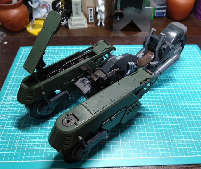 120 422 ぶんぶん丸8号 名前はアルシアが勝手に付けた名前って感じにしてみました('ω' ) 電動トライクなのでマフラー部分はバッテリータンクに変わっております 8号なのは1号〜7号が運転の粗さで殉職されたものと思われますm(_ _)m 何気に格納式機関銃搭載 #ヘキサギア #ブキヤバイク 23/10/11 08:04