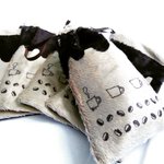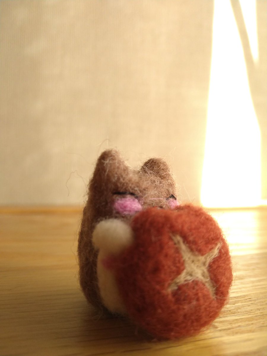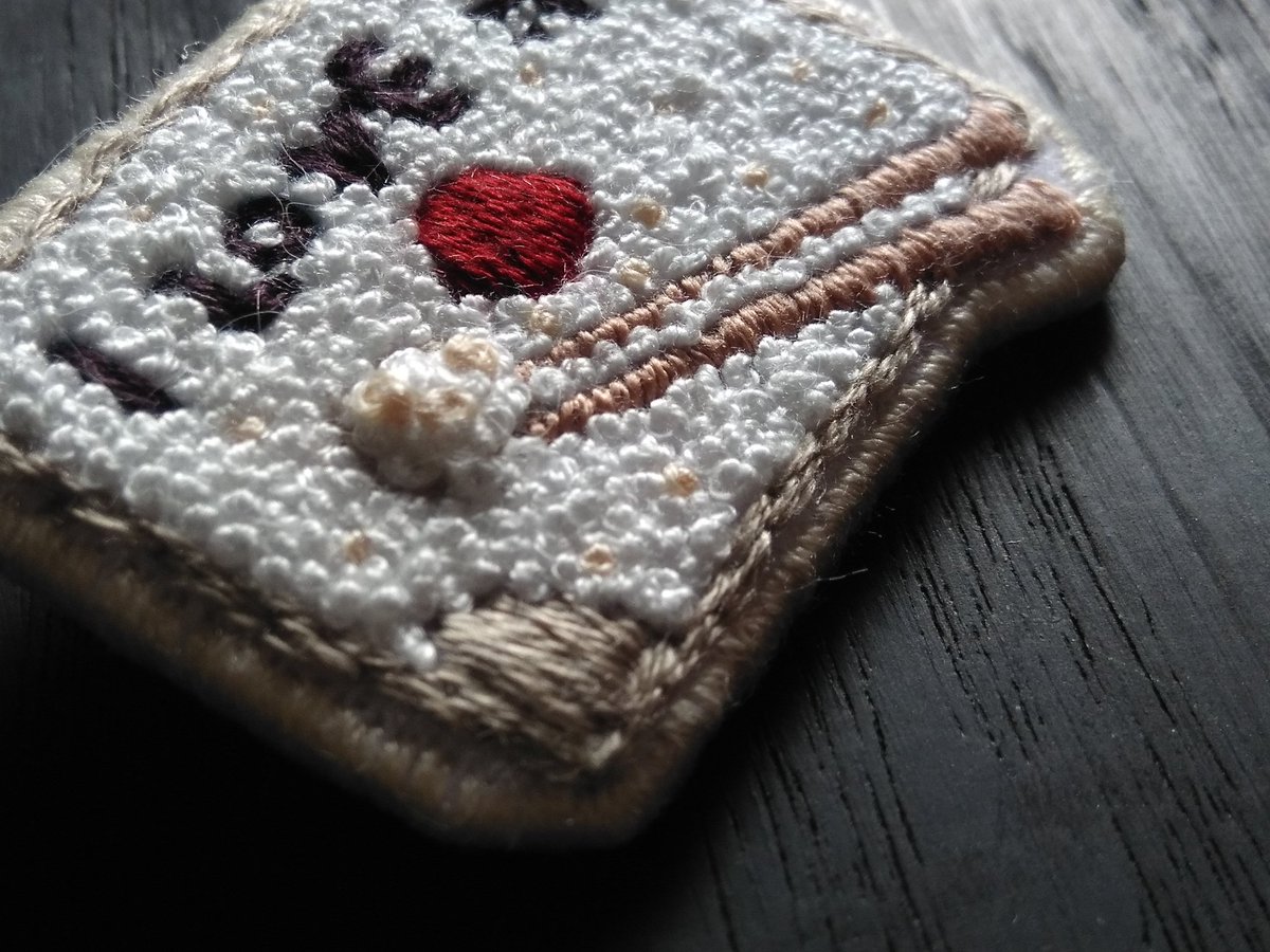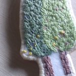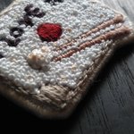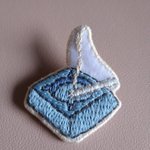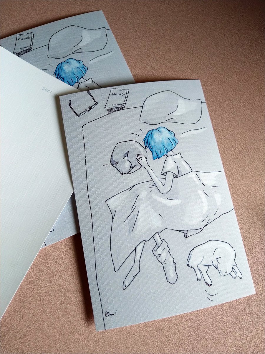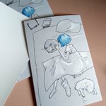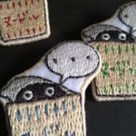 #ちいさなしあわせ展 はじまりました! 猫と眠る至福のときを描いたよ あと、イラストと同じ色味のタバコの刺繍よ🚬 どっちも、まったりしていてワタシは好きなんだよね twitter.com/futabaneko/sta…