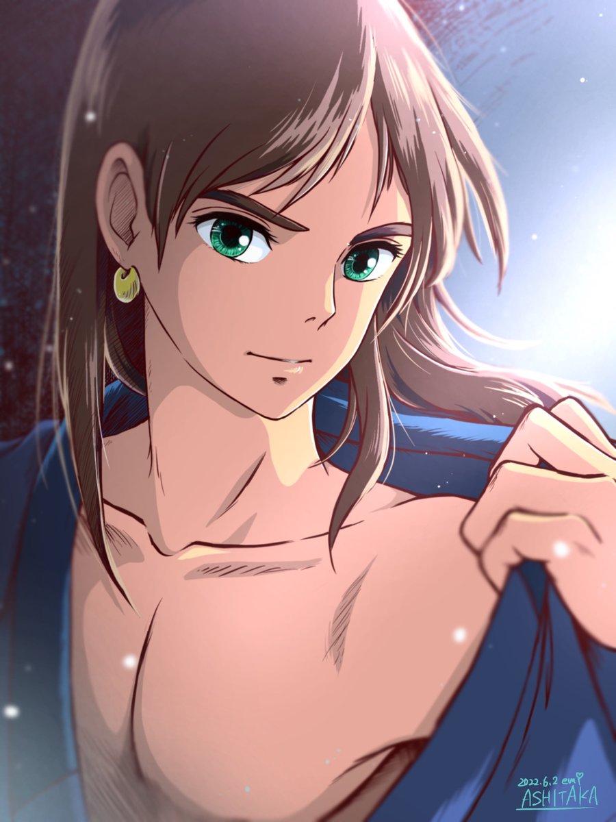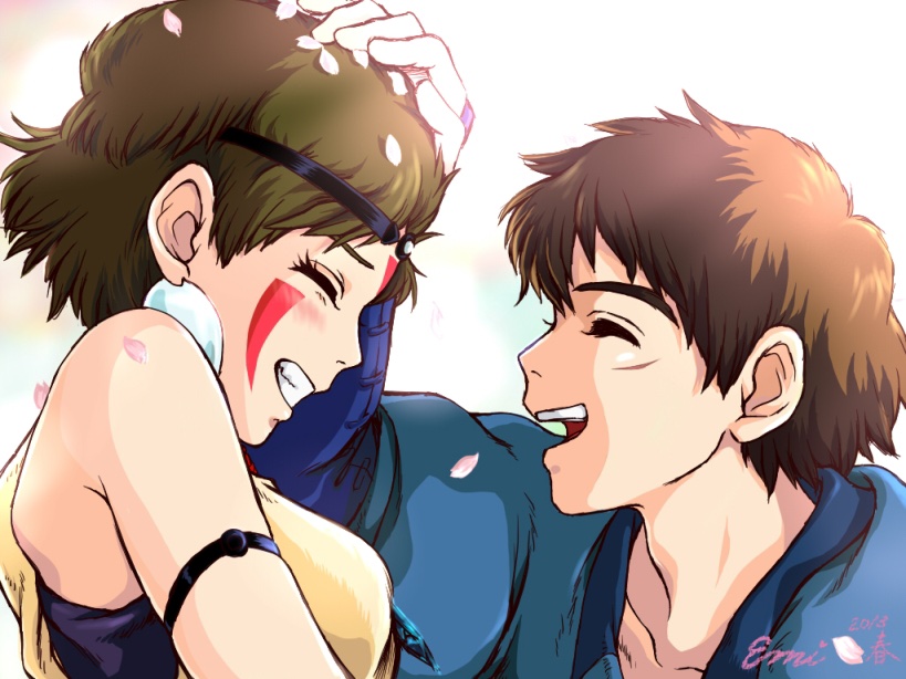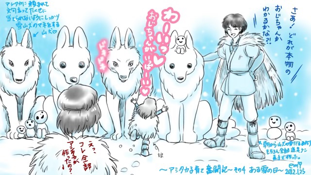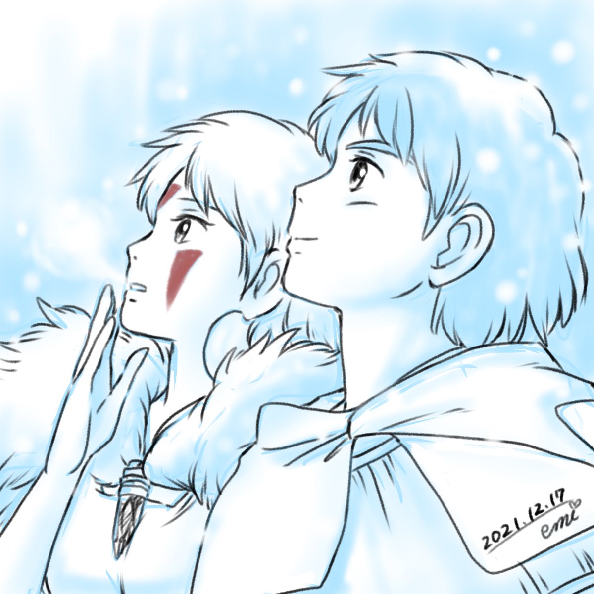 #このタグを見た人はラフ画とその完成絵を見せる #もののけ姫 いつもラフはかなりざつで、いい加減だし、線画清書してる時にラフ直したりしながらあちこち変わっていくので、このイラストが1番キレイにラフが残ってました💦