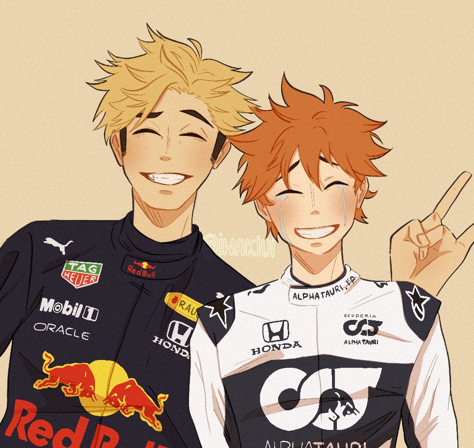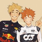 [haikyuu f1 au] Shoyo’s first podium ever tastes better with the sister team’s racer by his side 🤘🏼😙 #Haikyuu #haikyuufanart #atsumu #hinata #haikyuuf1 #haikyuuracing
