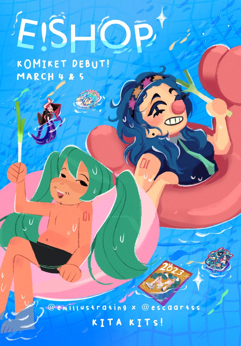 only 5 days until #komiket2023 so here's a sneak peek of some merch and where to find me and @escaartss !! see you so soon🏃