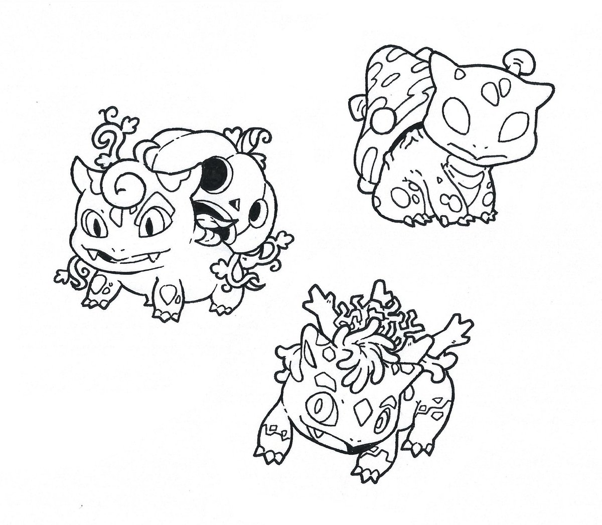 Bulbasaur crossbreeds for #inktober, day 22! Pumpkaboo, Corsola and Parasect babies #inktober17 #inktober2017