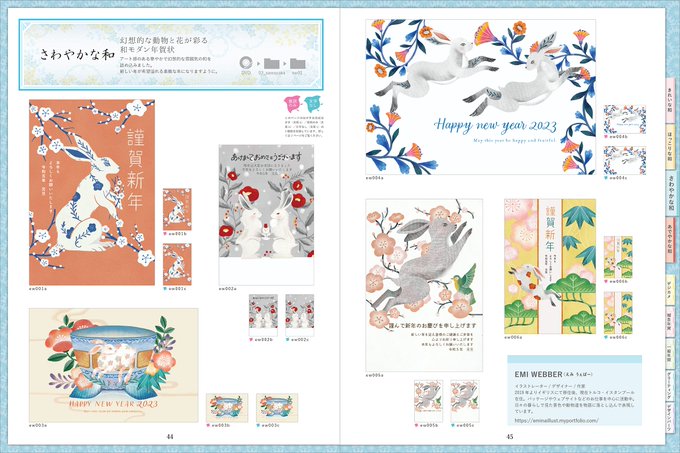 【Works】 技術評論社より発売の、おしゃれにはなやぐ和モダン年賀状 2023年にて、今年も年賀状を描かせていただきました🐰 少し早いですが、そろそろ年賀状準備の時期ですね🤭✨どうぞよろしくお願いします🙏 amazon.co.jp/dp/429712985X