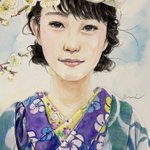 0 11 来年の秋に展示予定の絵 夏つばき フルメイクをした中学生がモデル #沙羅 #水彩画 #銘仙 23/07/01 10:16