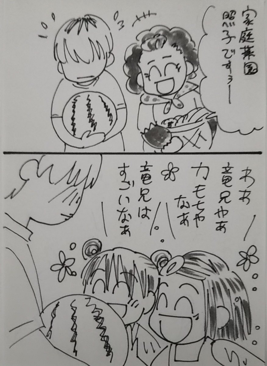 2 51 妄想スカーレット 夏休みに喜美子の家の庭先で水遊びをする桜と桃🌸🍑 このあと照子がスイカを抱えた竜也を連れてきて皆でおやつ🍉 夜は花火🎇 #スカーレット #スカーレット絵 #スカー絵ット 20/07/06 23:42