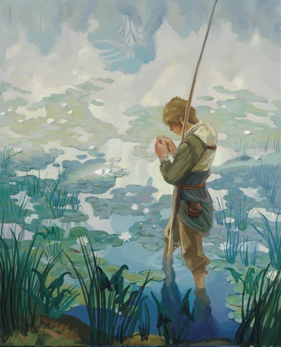 One of my master studies for @AtelierHylia ! This is TP Link in NC Wyeth's "Thoreau Fishing" (1936). You can find the 🆓 digital zine of all sorts of Zelda master studies at the Atelier's Twitter, if you haven't checked it out yet, you should!! #LegendofZelda