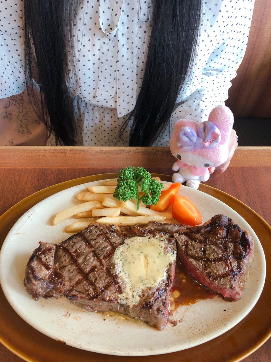 0 8 ここの『いちごのパフェ🍓』を 食べに来た⸜(๑⃙⃘'ᗜ'๑⃙⃘)⸝ その前に、 ステーキを食べたよ✨ψ(´ڡ`♡) #ステーキ #ぬい撮り 🐰 20/03/06 20:20