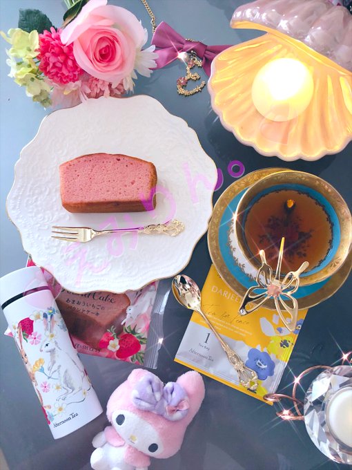 6月7日 日曜日 おはよう୨୧⑅* おうちカフェしたから、 写真撮ったよ💗( රωර) #おうちカフェ #afternoontea #利光春華 さん(@ToshimitsuH ) #ぬい撮り