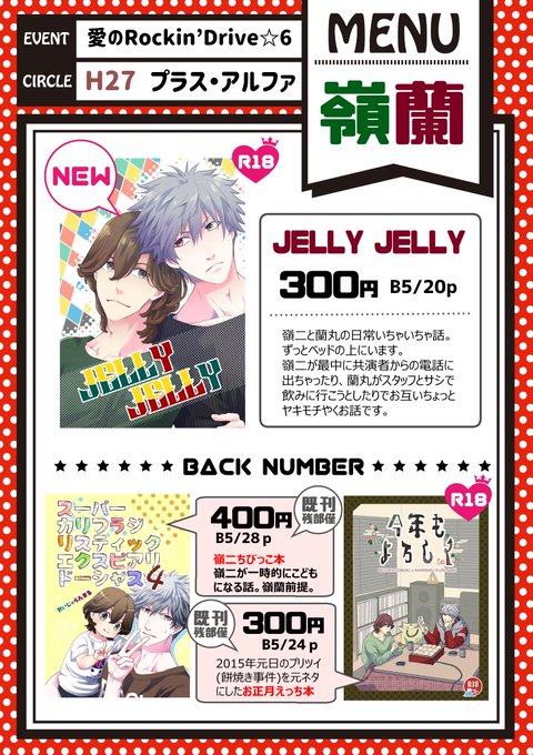 【おしらせ】お品書き 8/20超プリ★コン夏のお品書きです 新刊サンプルは引用RTよりご確認ください お取り置きは下記フォームより受け付けております ⏰8/19(土)12:00締切 forms.gle/xnk4f2YB35bxj5… twitter.com/emiyuki_rr/sta…