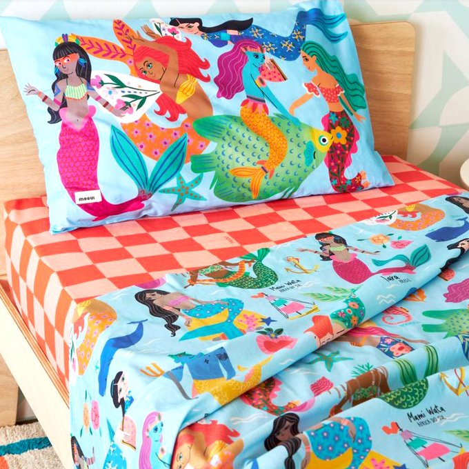 Perfect timing for MerMay! Mermaids bedding for MOOUI. I loved working on this collaboration, researching and drawing mermaids from around the globe 🧜♀️💦 #mermay2023 #mermaids #surfacepatterndesigner #kidsdecor #childrensbedding #interiordesign #kidlitartist