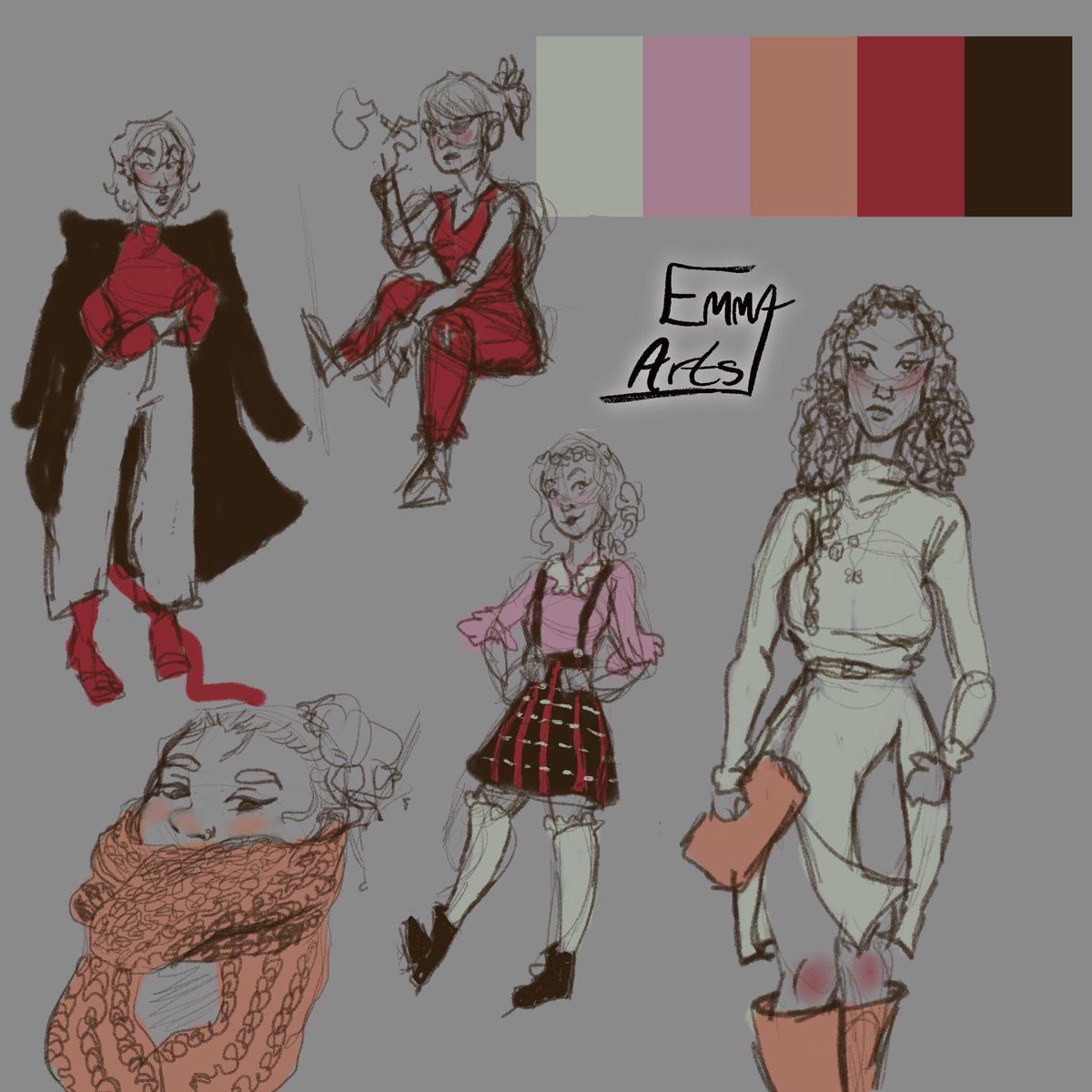 (Late) Day 4! Wanted to do a good ole fashioned fashion illustration as we roll into fall, featuring some original characters of mine (Ami Jae, Xena on top and Mae, Reese, and Sienna on bottom 🥰) #inktober2021#drawtober2021#digitalart#Procreate