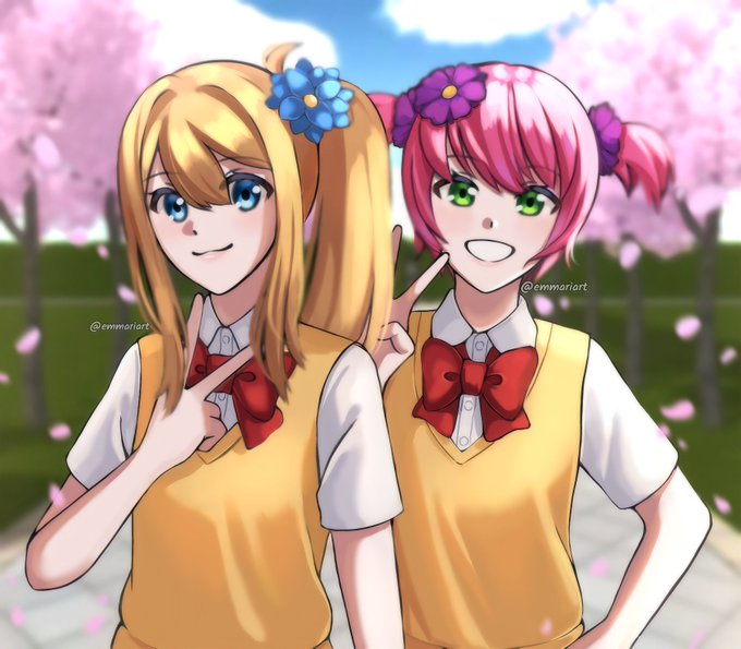 Himari Fujita & Sakura Hagiwara 🌸 They both are the gardening club girls from yandere simulator #art #artwork #illustration #digitalart #himari #sakura #yanderesimulator #gardeningclub #ibispaintx