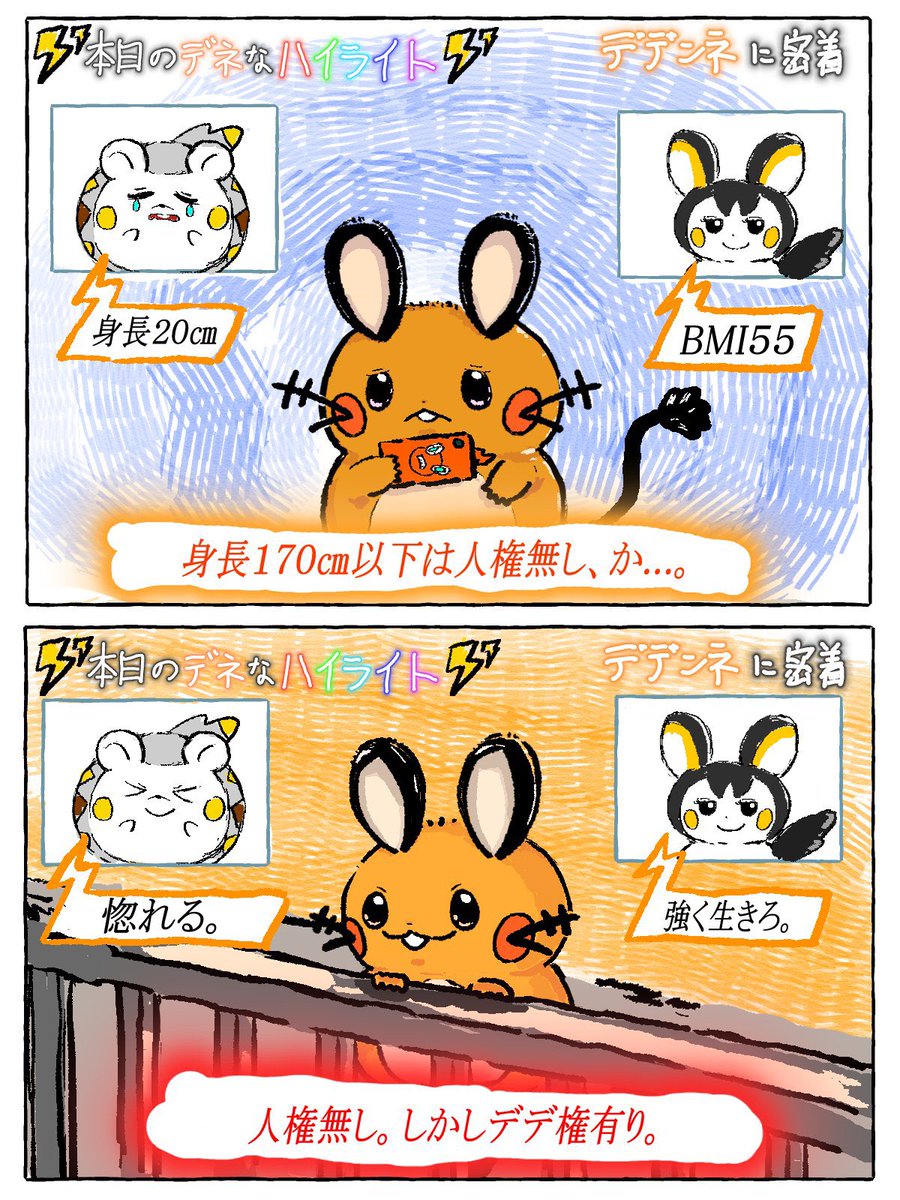 うないいちどうさんの「本日の地味なハイライト」が好きすぎて、デデンネでそのパロディを描きました!>o^ω^o< 本日のデネなハイライトです!!₍₍ ʅ(>o^ω^o<)ʃ ⁾⁾ #本日の地味なハイライト #本日のデネなハイライト