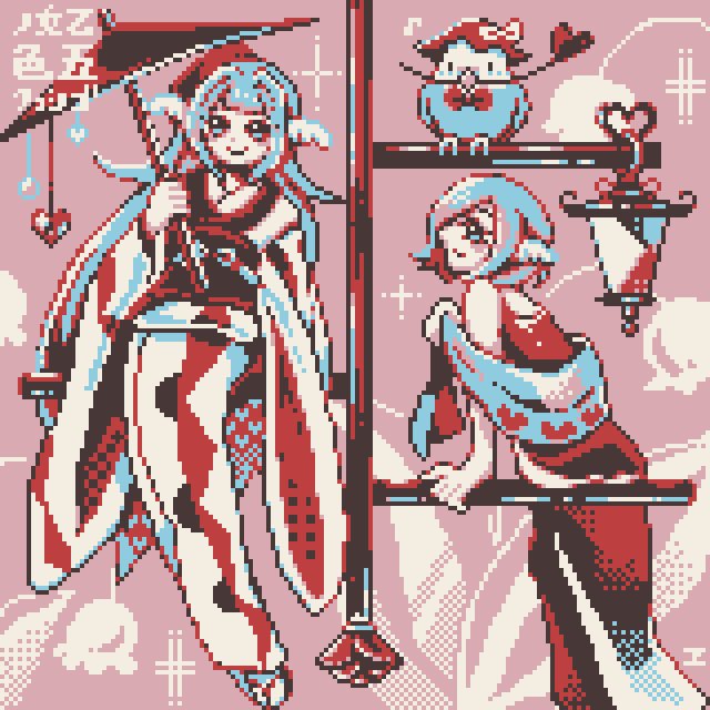 琵琶牧々と琴古主 Biwa-bokuboku and Koto-furunushi 5月5日の妖怪企画に参加させて頂きました✨ #dotpict #pixelart #ドット絵 #妖怪企画 #3colors