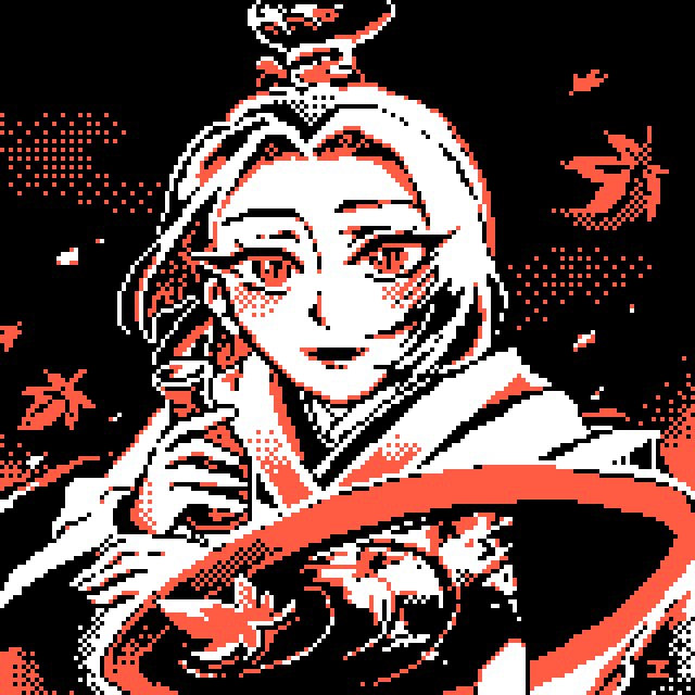 紅葉狩 Momiji-gari 妖怪企画の2作品目です✨ #dotpict #pixelart #ドット絵 #妖怪企画 #3colors
