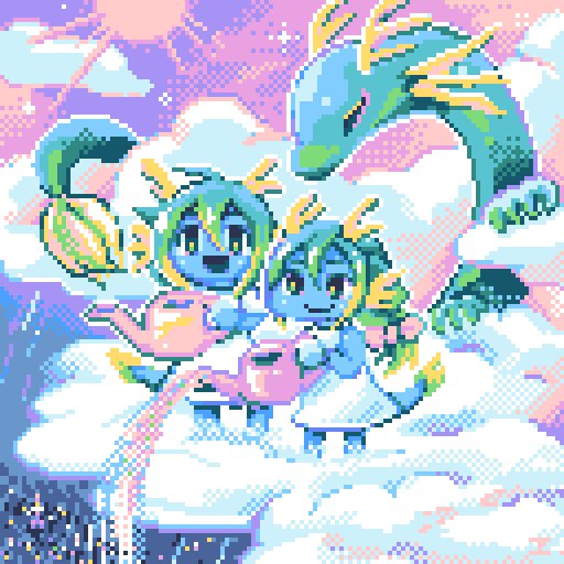 🐉🌧雲の上🌧🐉 Above the clouds #梅雨のピクセルアート #dotpict #pixelart #ドット絵