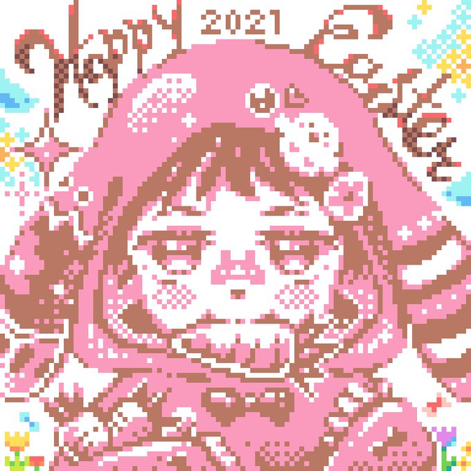 18 65 3colors!✨ cLさんから頂いた3色のイメージカラーで描いてみました!描きやすかったです✨ 右の子はcLさんの代理のエルシィちゃん🐺💕 うちのツノっ子はデレデレしてますね笑🐑 #dotpict #pixelart #ドット絵 twitter.com/cLciel57520/… 21/12/10 19:39
