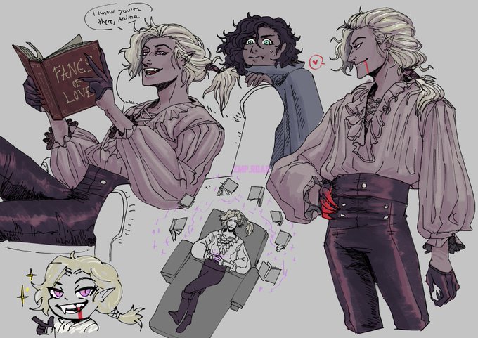 Strahd von Zarovich's consort: Escher in all his glory I love this NPC so much like I know him for like 1 session but he's such a good bro to Anima Also Fangs of Love is an inside joke of the party (it's a thirst vampire novel) #CurseofStrahd 🦇🧛♂️ #dndart #DnD