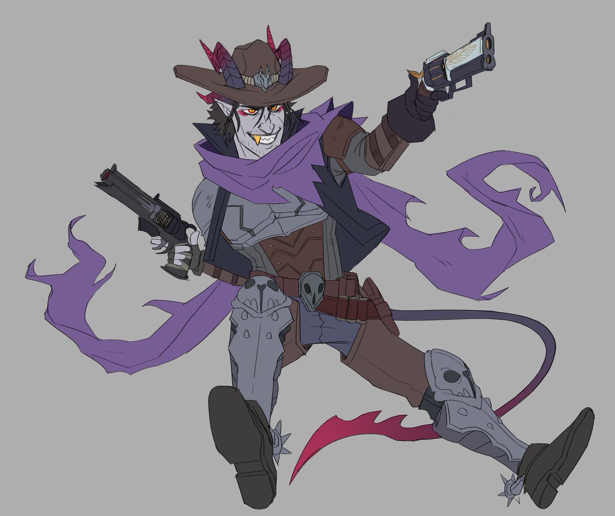 not CoS related but here is Kacius, my first DnD tiefling bby, a Warlock-Gunslinger and I so miss his rat bastard tendencies, with the new Ravenloft stuff coming out I kinda want to redraw him as a dread lord of sorts in the future 🤠👿 #dndartists #DnDart