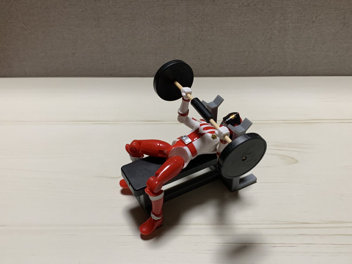 【トレーニングをする圭一郎】 パーツの棒が合わなくて代用品として竹串を使用しました。 #オモ写 #ルパパト #ガチャガチャ