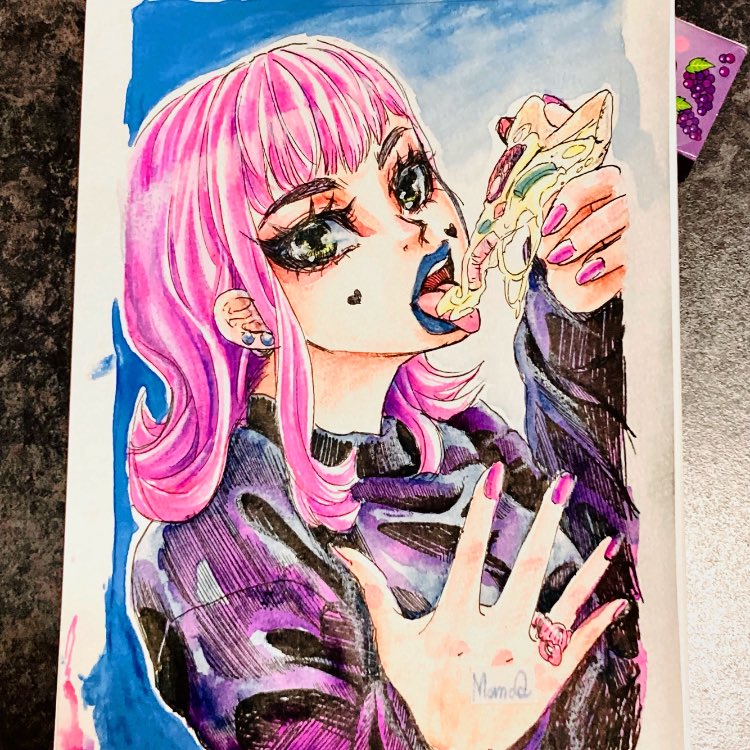 先月のお題ですが DAY16:mermaid 加工で色の飛んだ部分ほか、今までで1番いい感じに水彩で塗れたお気に入り #cutegirltober #cutegirltober2021 #inktober2021