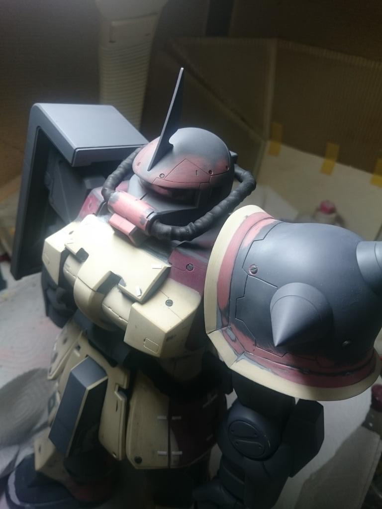 #制作カロリーの高い作品を上げようぜ 【1/48メガサイズ F2ザク(ビッター少将機)】シャアザクを元にほぼエポパテの塊魂😤画像が無いですが、最終的には腕と脚も更に盛って、パイプは熱収縮チューブに変更しました。製作期間約1年😂 #ガンプラ #ザク