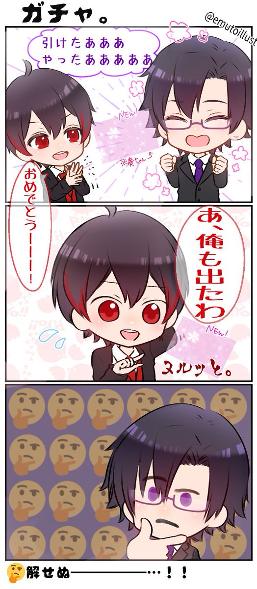 rkgk3コマ もふくんとゆあんくんのツイやり取りより…🤔 ガチャあるあるですね…… #からぴち