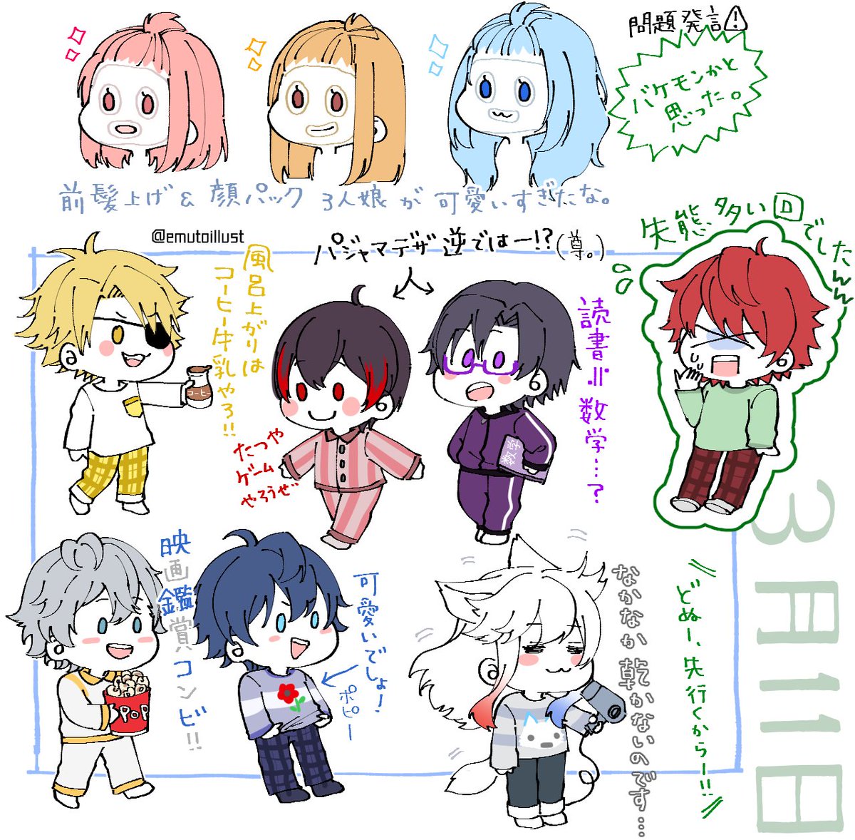 137 1210 ⚠️ネタバレ注意 【からぴち毎日投稿3月11日】 【マイクラ茶番】シェアハウスの夜に密着してみた! より パジャマとか最高ですか――――――・・・!?!?🤦♀️🤦♀️🤦♀️ #からぴち 22/03/12 10:24