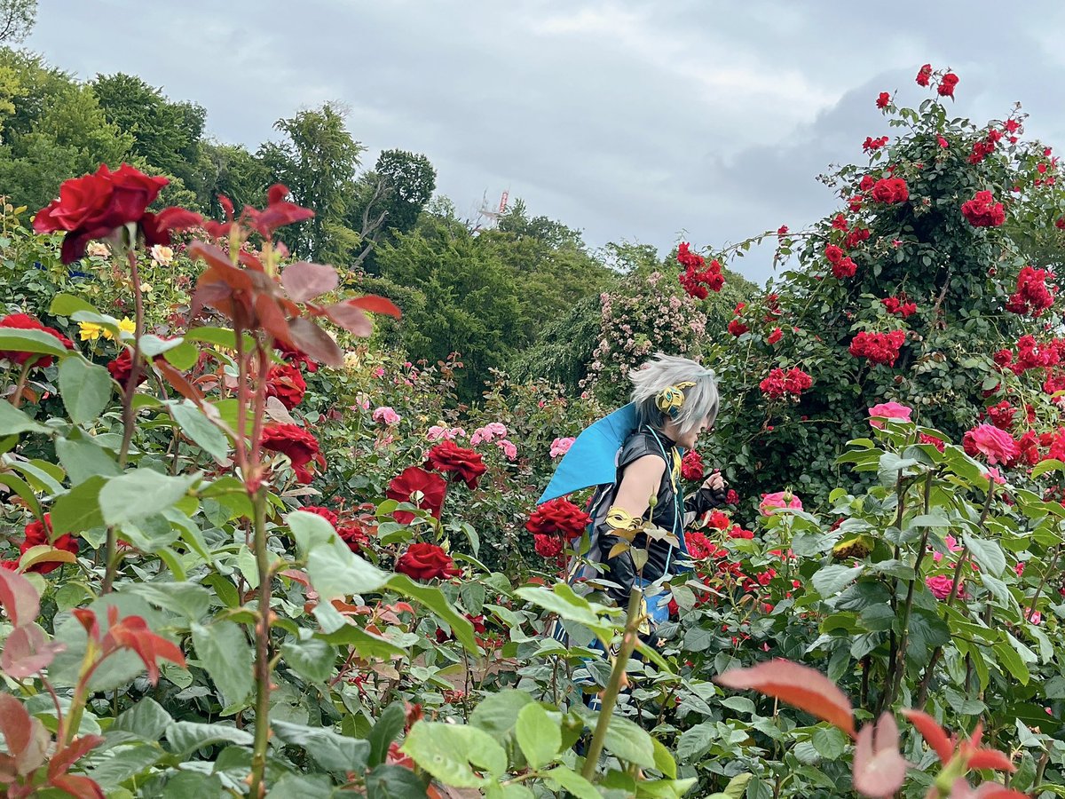 15 30 【コス注意】アルハイゼンやってきたぁ🌱雨予報だったけど吹き飛ばせて良かった❤️無事出せたよ✨バラハイゼンてことでね🌹 23/06/11 19:23