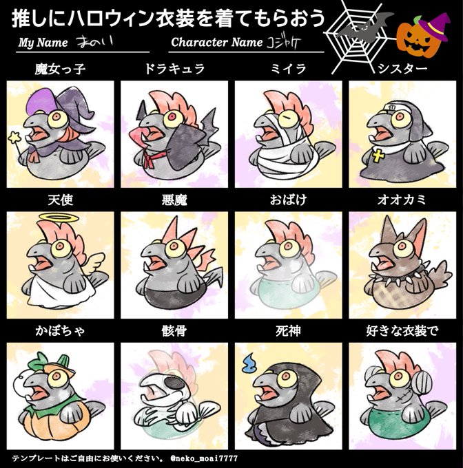 43 123 以前勢いで描いたのを忘れていたコジャケハロウィンテンプレート。コジャケかわいいね… 22/10/30 21:21