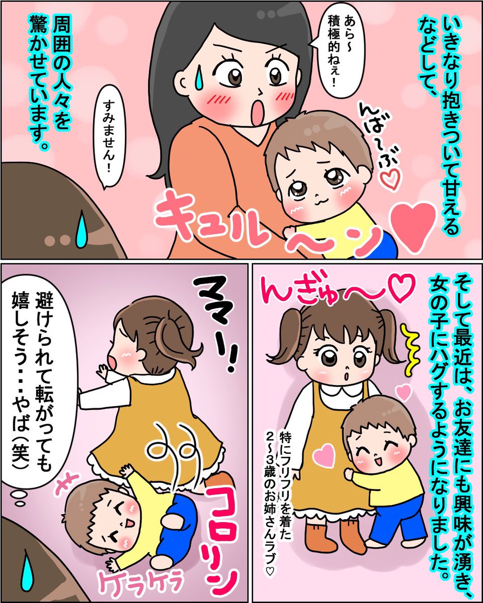 2 37 人見知りがない、ゆいくんのタイプは…?(2/2) 女子センサーが半端ないです😂 何で分かるのかな…? #育児漫画 #育児絵日記 #イラストエッセイ #漫画がよめるハッシュタグ 21/03/25 08:39