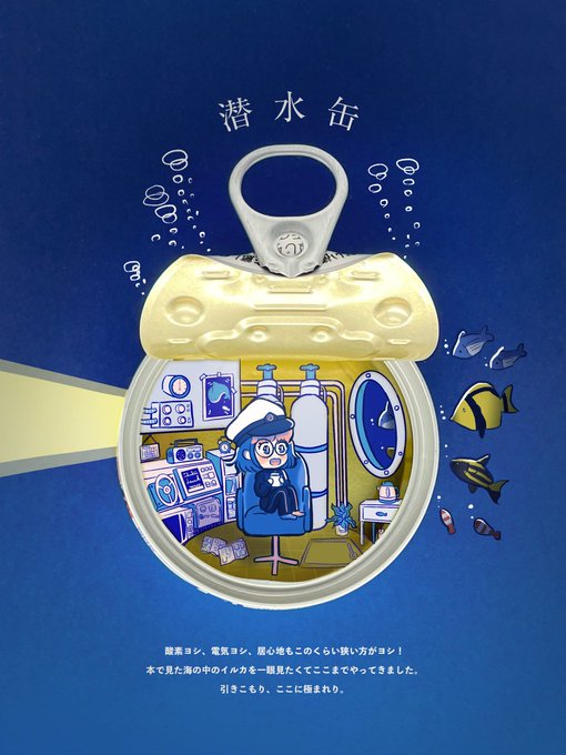 #ホイップスペース 写真の中にわくわくする物語を描く イラストレーターです📷 🥫空の缶詰🥫の中に 《深海好きの女の子》を描きました🐟🐠 twitter.com/i/web/status/1…