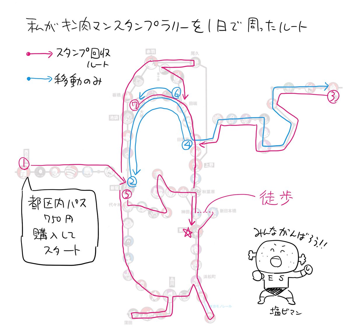 一応ご参考までに置いときますね。 私はこのルートで全駅周りました! #キン肉マンスタンプラリー