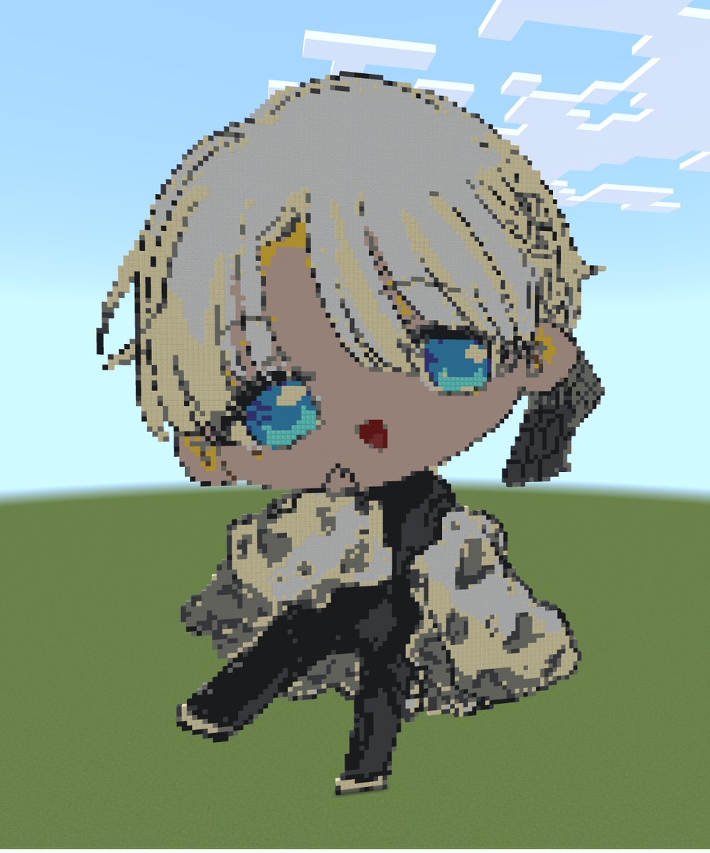 #いちばちマイクラ #アメひとつ #ペロアメ細工 ちょっとだけ解像度上げてみた 空色コンクリートじゃなくダイヤモンドブロック使ってるのでサバイバルモードでの再現は難しそう いつか拠点付近にいちばち組のピクセルアートとか飾れるといいな