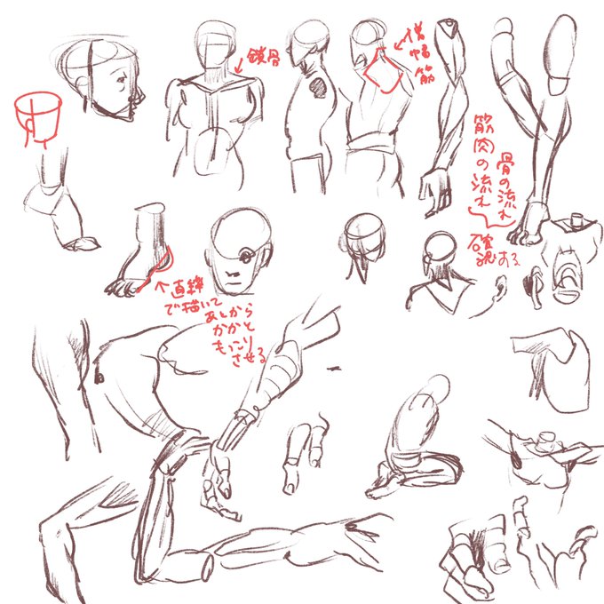 38日目。 今日はおやすみだったので、教本見ながらざくざくと。 ただ模写しただけだと結局頭に入ったないことが多く…。なので、気づいたことは赤字で書いて脳に入れていく…! 指は円筒を意識したら描きやすいかも🤔 #アヤマルのらくがき