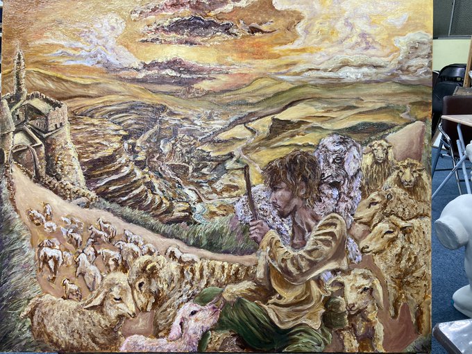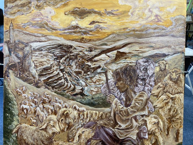 羊たちと羊飼いの少年の進捗 完成するのはいつだろう… #art #ArtistOnTwitter #みんなで楽しむTwitter展覧会 #illustration #oilpainting #絵描きさんと繋がりたい #冬の創作クラスタフォロー祭り #portrait #イラスト好きさんと繋がりたい